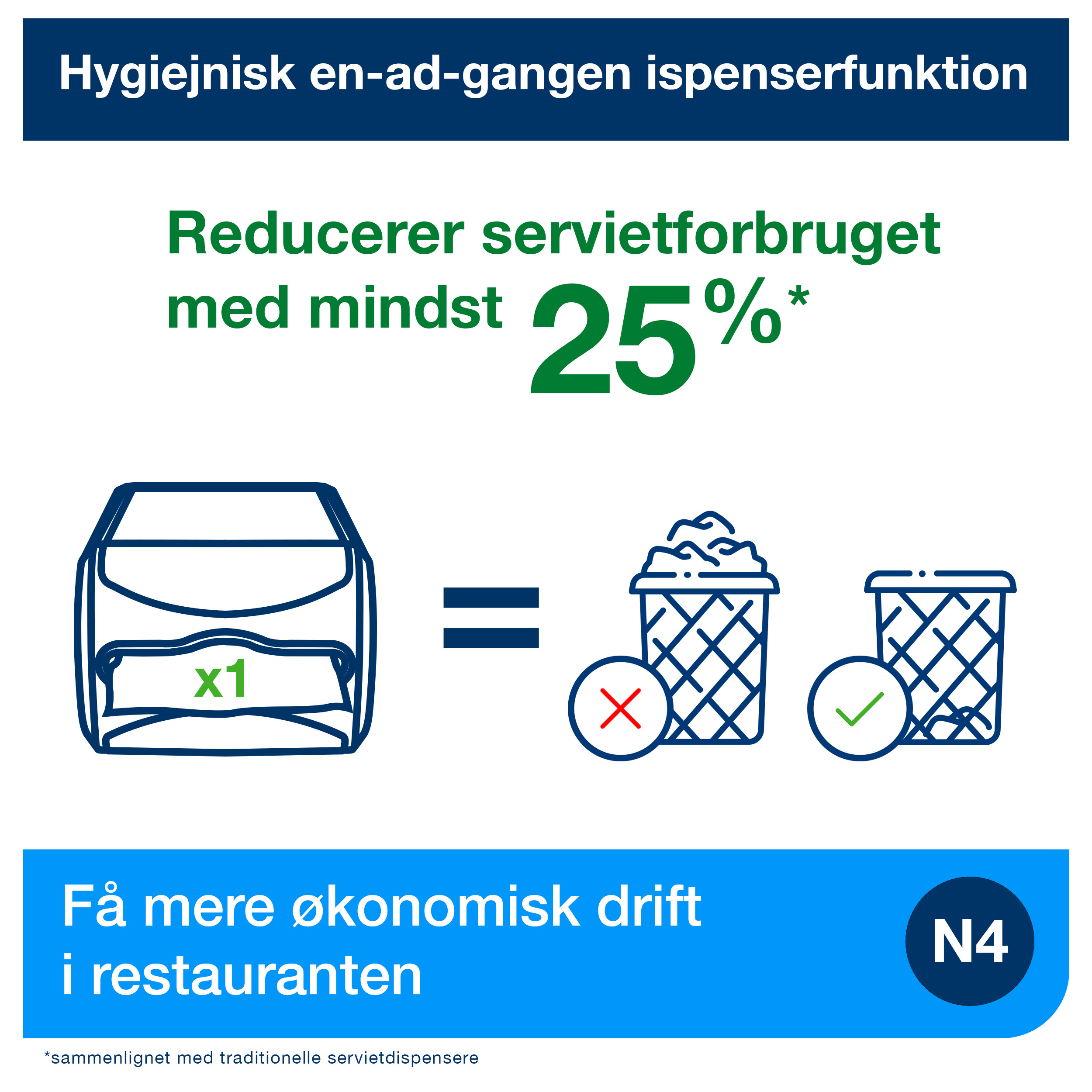 Et-ark-ad-gangen dispenserfunktionen forbedrer hygiejnen, samt reducerer forbruget med mindst 25%.